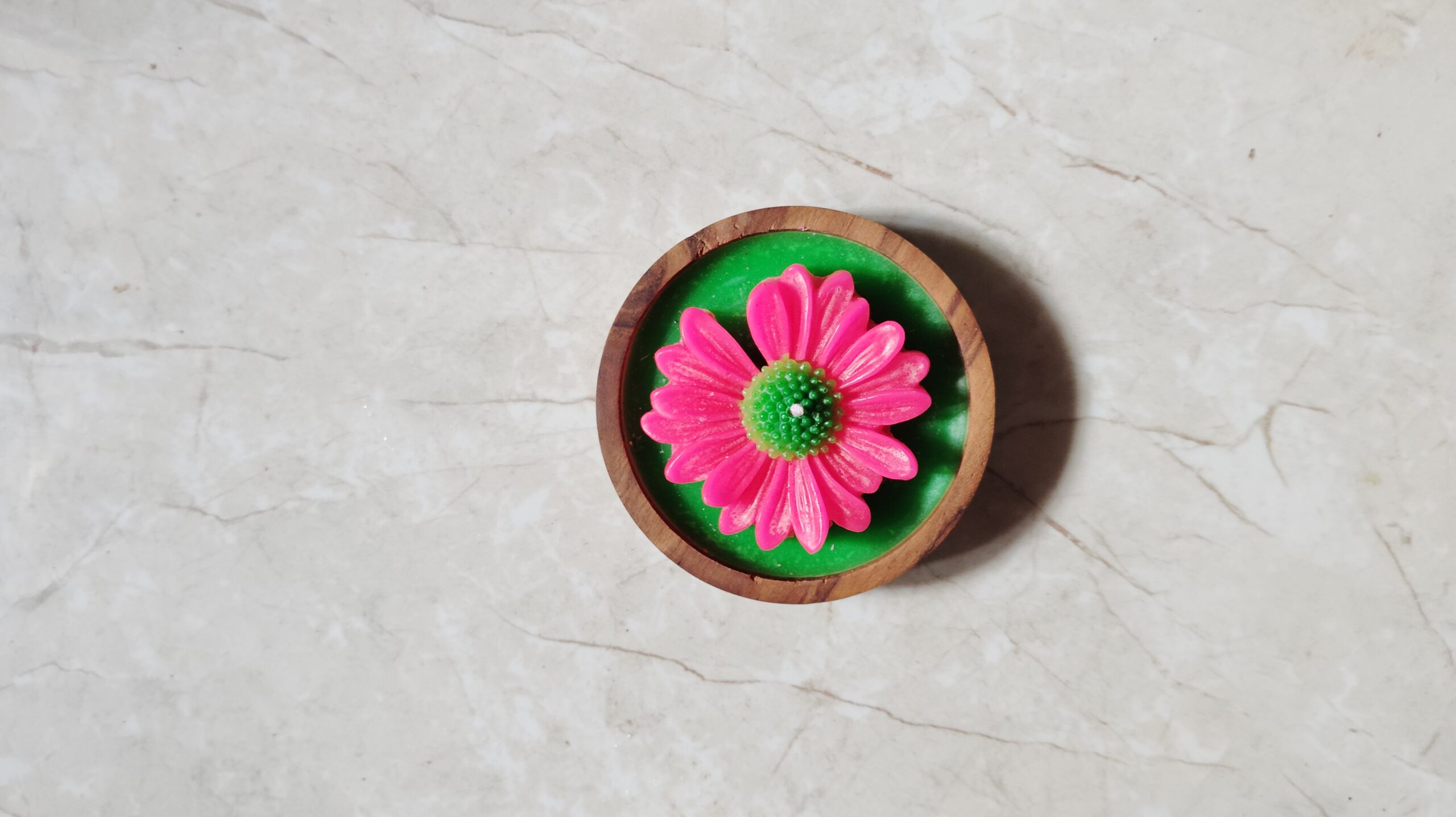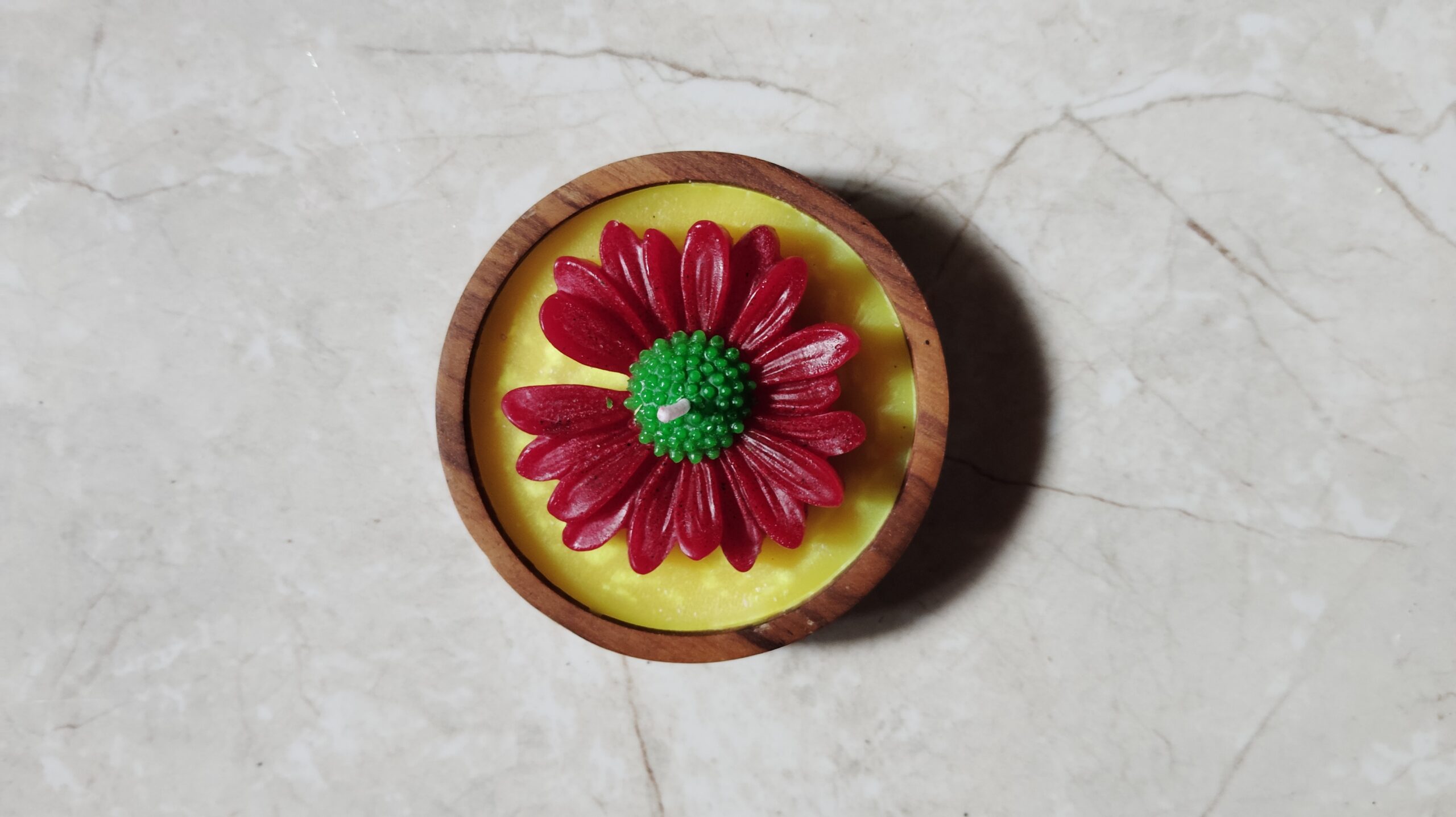 Add charm and color to your space with these unique flower-shaped candles in wooden bowls. The bright floral design makes them a beautiful centerpiece for tables and décor setups. Crafted to create a warm and soothing atmosphere in any room. The wooden base gives a natural, elegant look that suits modern and traditional interiors. A lovely choice for gifting, celebrations, and special occasions.